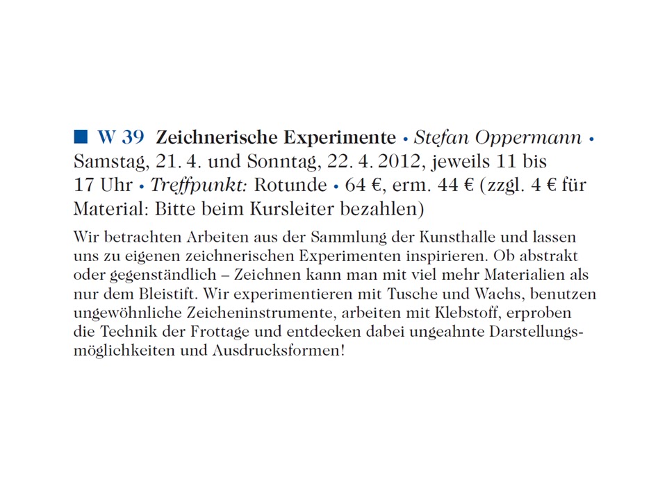 Quelle: Auszug aus dem Kursprogramm der Kunsthalle |