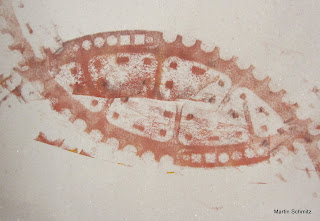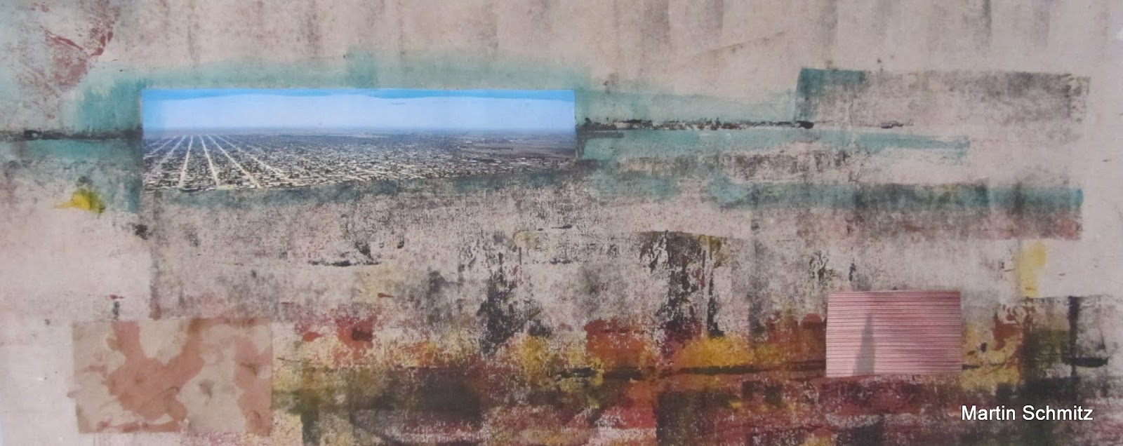 Vor dem Arbeitesort lagen große Schiffe und man hatte viele Hafeneindrücke. Ich habe dann fleißig gedruckt, gemalt, collagiert…