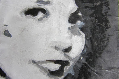 Dann habe ich auf weitern Ausdrucken noch mit verschiednen Farben, Wachsmalern, Tusche, Kleber usw experimentiert. Das sind zwei Bilder die dabei rausgekomen sind: