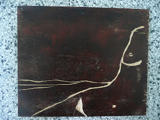 So ist der Holzschnitt entstanden. Ich habe zur Holzberabeitung ausschließlich mein japanisches Bildhauerbeil benutzt. Der Farbauftrag erfolgte mit Linolfarben. Diese wurden gewalzt und teilweise auch mit den Fingern direkt aufgetragen. Zwischenzeitlich wurde auch Die Farben nochmal entfernt und Teile wurden zwischengeschliffen: