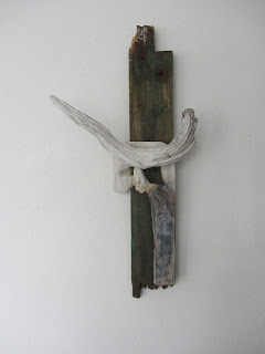 Als Material benutzt sie vielfach gefundenes „Totholz“ aber auch verschiedenste andere Fundmaterialien. Diese werden gern auch kombiniert, es gibt auch einige Bronzen.