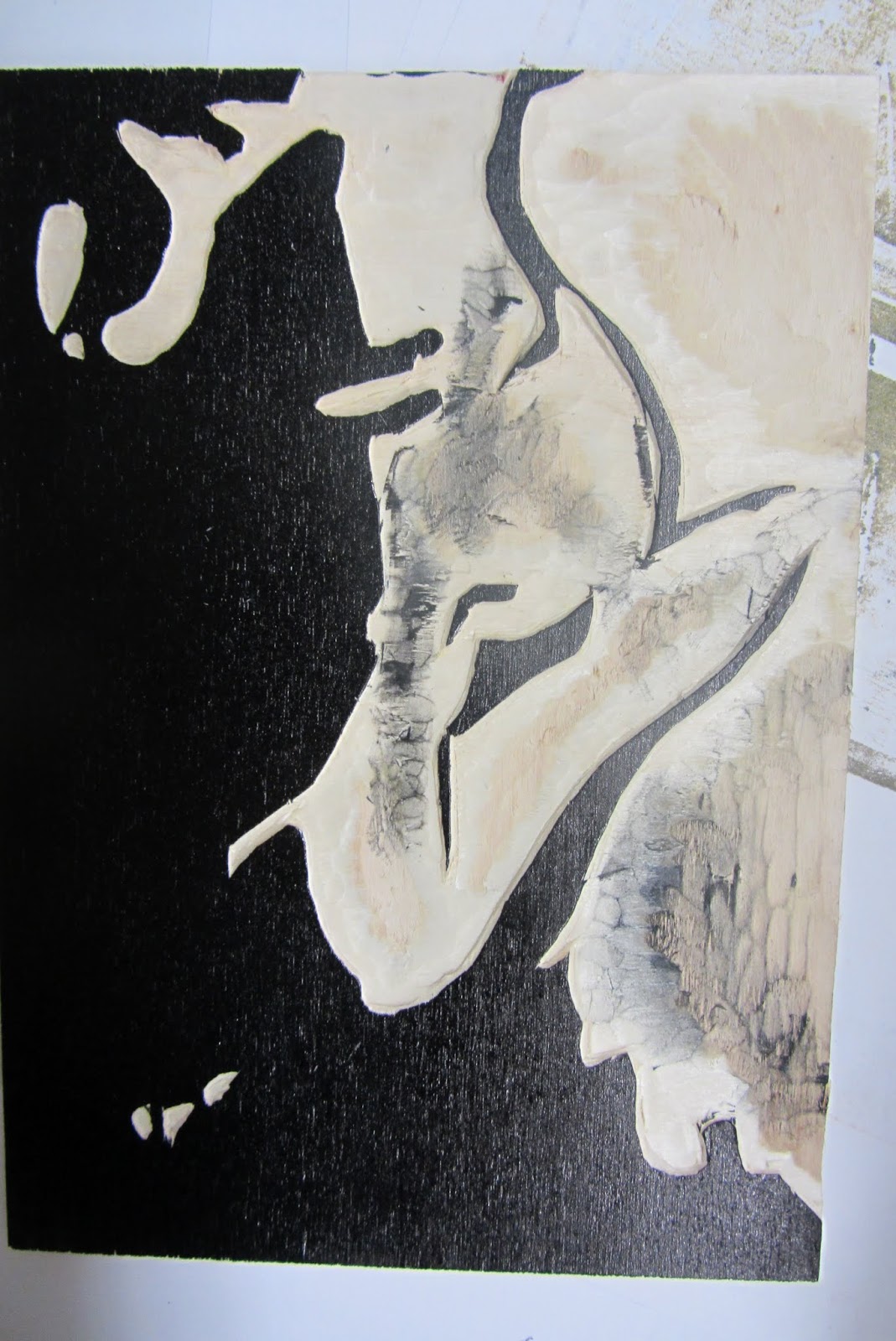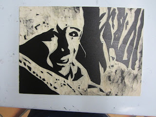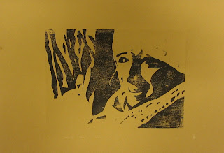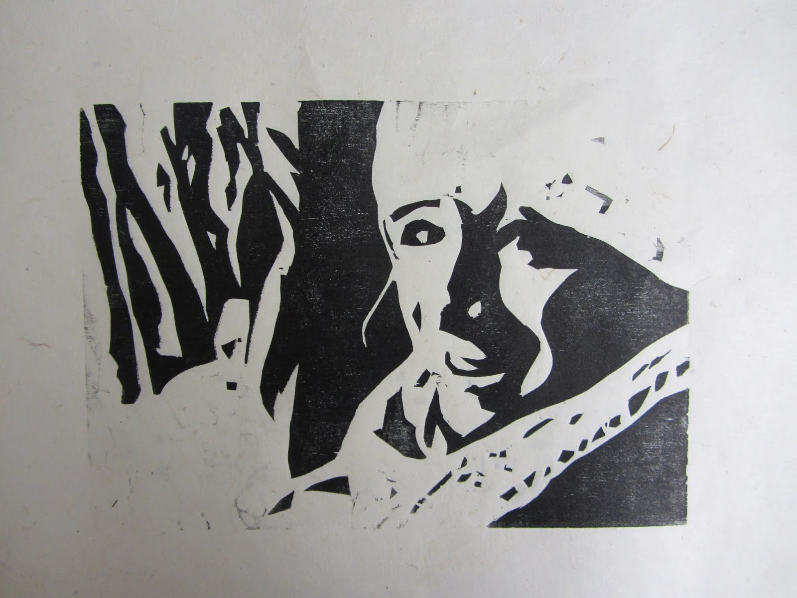 Ich habe mir vorgenommen einen zweiten Holzschnitt von Leonie (links unten der ersten Schnitt von Ihr) zu machen: