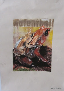 Vor dem Arbeitesort lagen große Schiffe und man hatte viele Hafeneindrücke. Ich habe dann fleißig gedruckt, gemalt, collagiert…