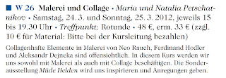 1. Bilder, Collage, Kurs, Mischtechnik Kurs Malerei und Collage Bild 24/03/2012 martin Schreibe einen Kommentar Kurs in der Galerie der Gegenwart Ergebnisse des ersten Tags: Bilder vom zweiten Tag Ein paar Eindrücke vom Kurs: